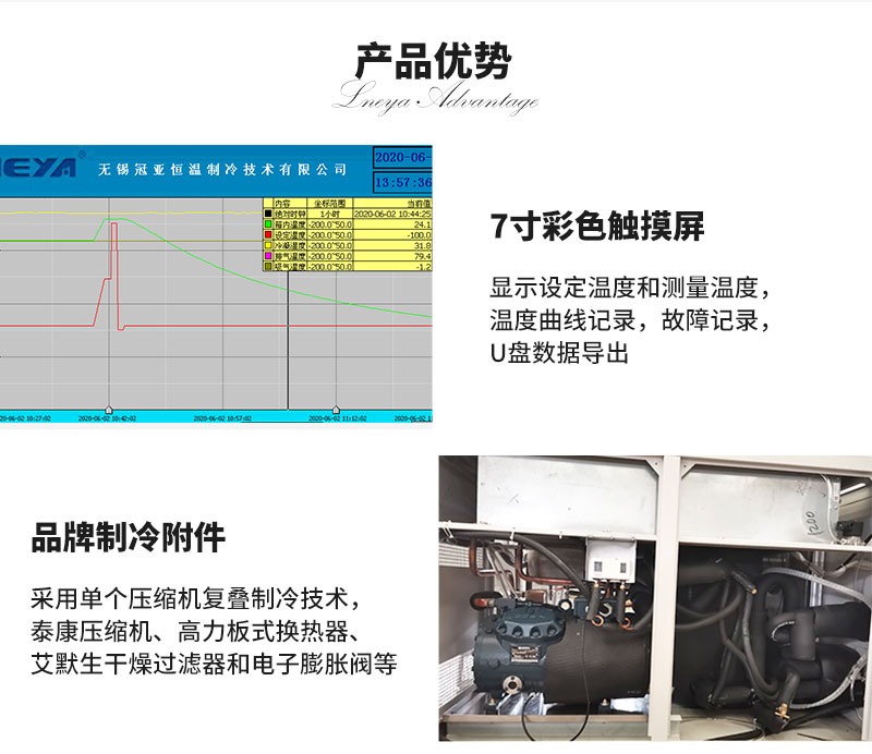 | 制冷部件 | 冷凝器、板式換熱器、油分離器、壓力傳感器、溫度傳感器、干燥過濾器、電子膨脹閥、氣液分離器、視鏡、變頻器等采用知名品牌 | ||||