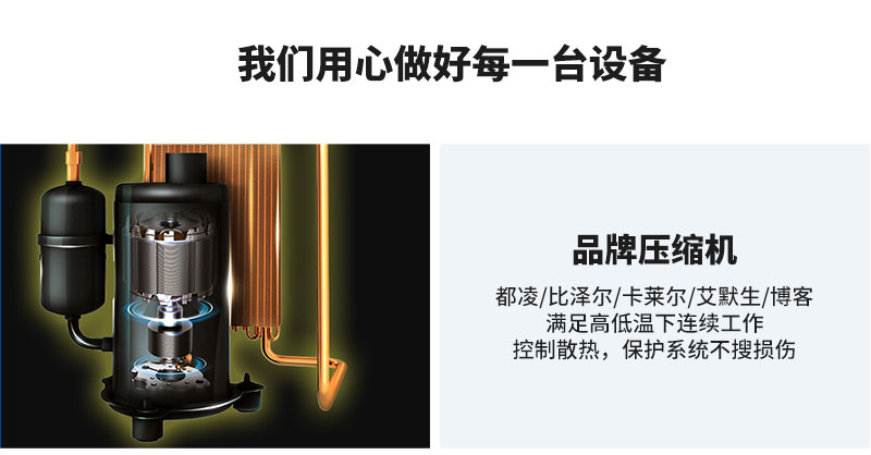 | 制冷附件 | 油分離器、干燥過(guò)濾器、熱力膨脹閥、電子膨脹閥、制冷電磁閥、壓控、視鏡等均采用艾默生/丹佛斯/三花品牌 | ||||